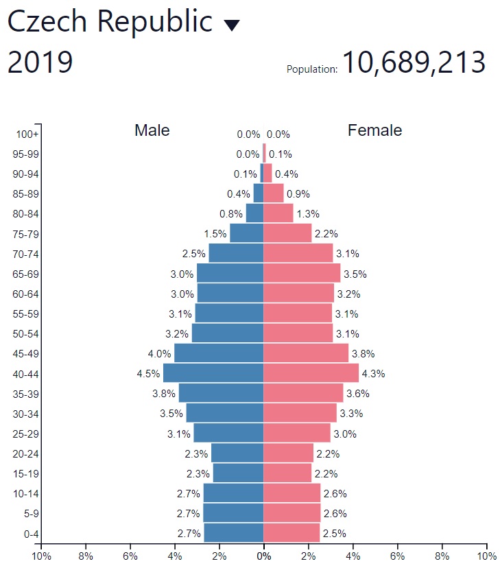 Populační pyramidy od roku 1950 s predikcemi do roku 2100 od https://www.populationpyramid.net/
